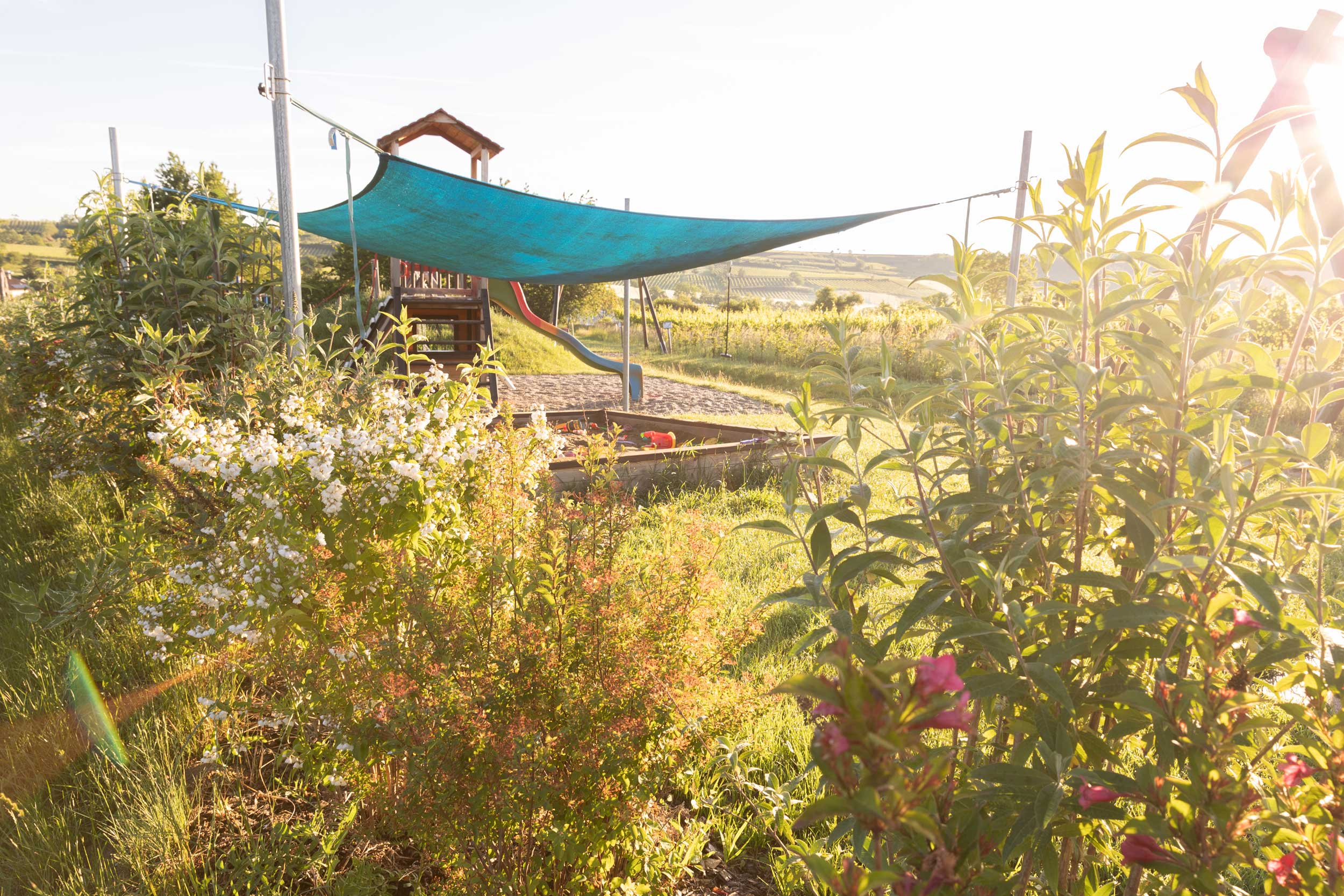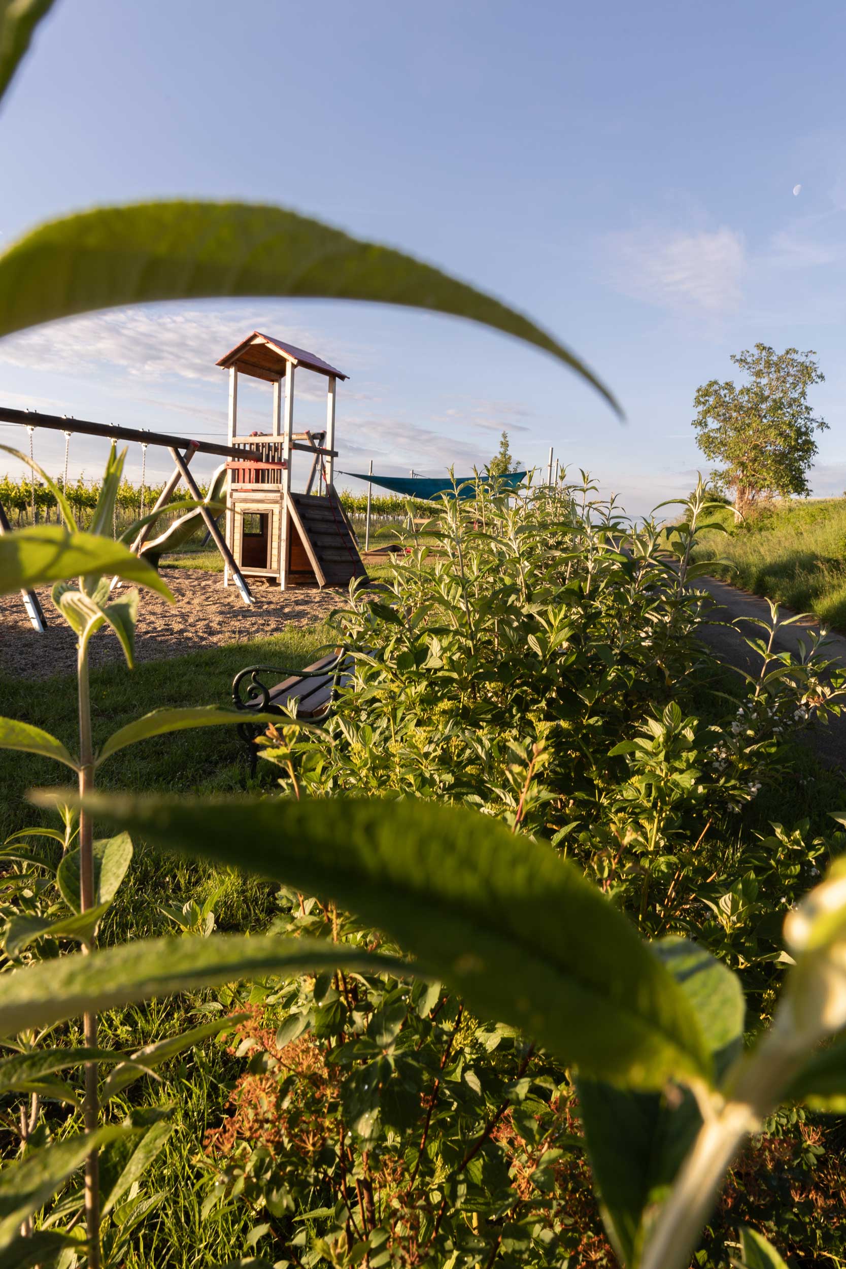 Für die auftraggebende Gemeinde wurde ein Spielplatz begrünt. Bunte Farbtupfer und viel Grün umgeben die natürlich gestalteten Spielflächen und bilden einen Sichtschutz zum angrenzenden Spazierweg. Es wurde auf Artenvielfalt, Wind- und Sonnenschutz geachtet. Naschhecken sind ein cooles Extra für die Kids.
