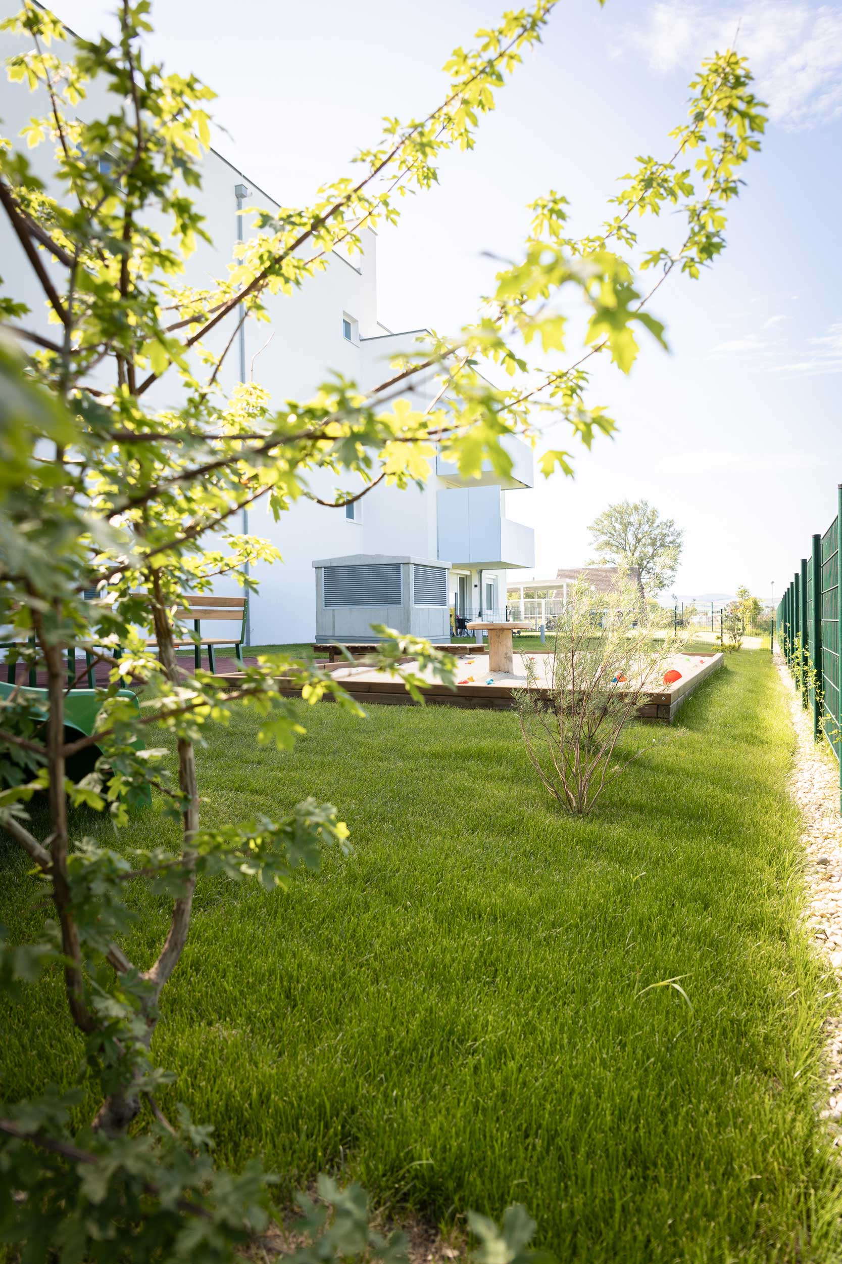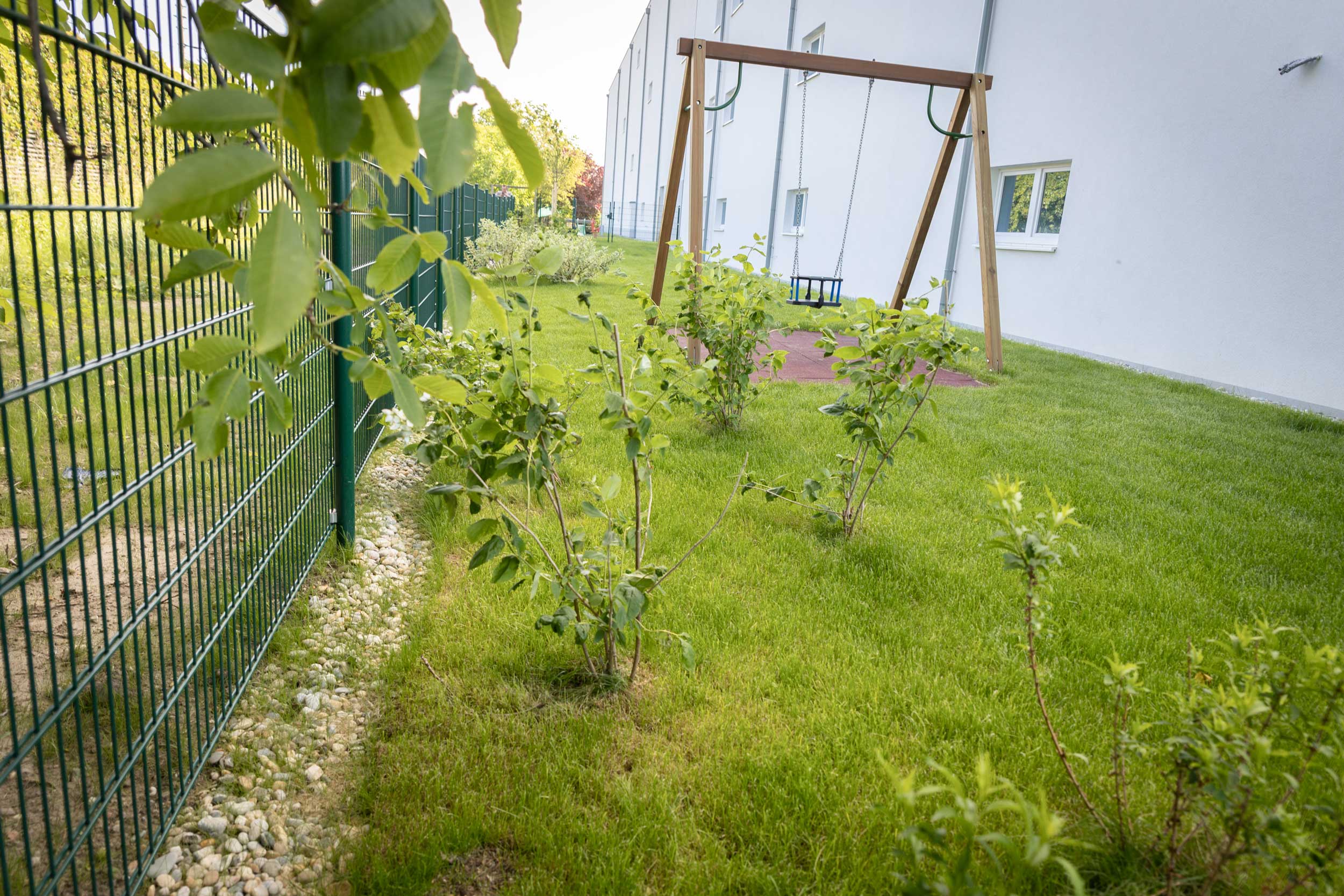 Nach Zuschlag bei einer Ausschreibung wurden im Frühjahr 2024 im Auftrag der Baufirma Leyrer+Graf die Grünräume einer Neubauanlage gestaltet. In den Eigengärten wurde Rollrasen gelegt, die Außenanlagen wurden mit verschiedensten Bäumen, Sträuchern und bunt blühenden Stauden bepflanzt um Schatten zu garantieren und der Natur Raum zu geben.